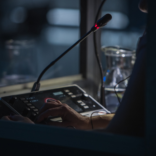 Acompaño conferencias, cumbres y reuniones de alto nivel, con interpretación simultánea profesional y discreta.